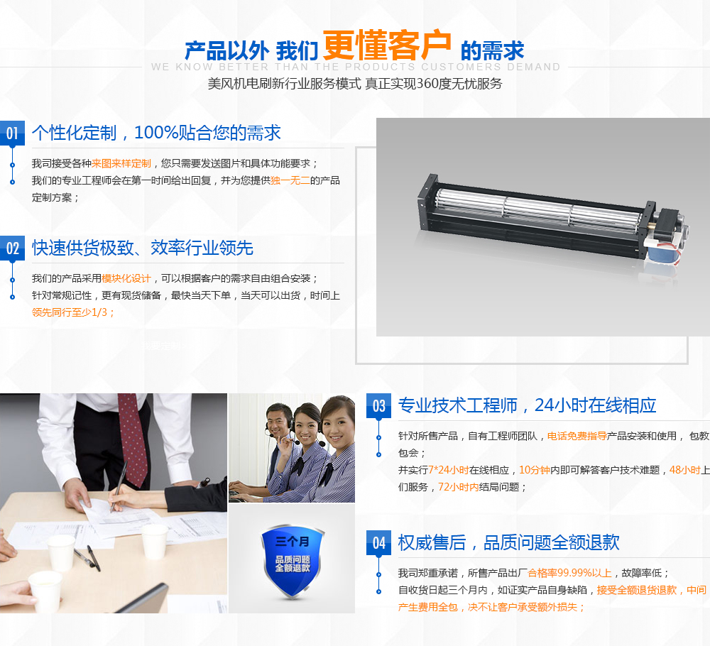 個(gè)性化定制:公司可根據(jù)客戶(hù)要求定做各種特殊功能風(fēng)機(jī)