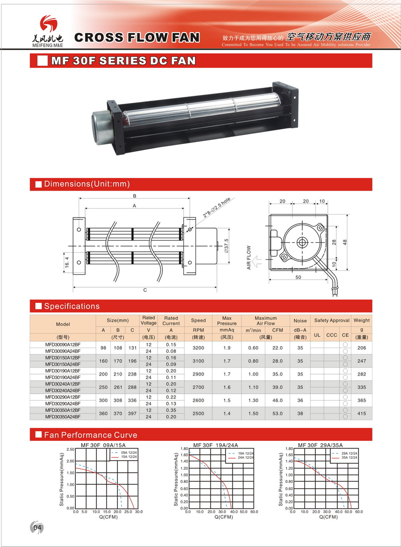 橫流/貫流風(fēng)機(jī)外殼為精密模具沖壓成型,電泳處理,外觀精美,結(jié)構(gòu)穩(wěn)定;鋁合金風(fēng)輪經(jīng)嚴(yán)格的動(dòng)靜平衡測試,動(dòng)轉(zhuǎn)平穩(wěn),風(fēng)量大,風(fēng)壓高,且震動(dòng)小、噪音低。配備耐高溫的高效率馬達(dá),直連式安裝,性能穩(wěn)定。出風(fēng)口可依客戶要求配方轉(zhuǎn)圓風(fēng)口,并可做0度、90度、180度調(diào)整,橫流/貫流風(fēng)機(jī)匹配的直流無刷電機(jī)可做12V或24V電壓 。